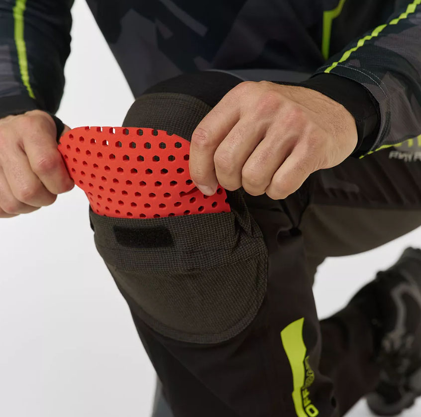 - Съёмные защитные накладки в области коленей защищают коленную чашечку от фронтальных ударов.