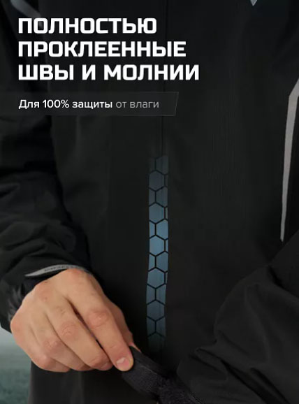 - Все швы и молнии герметично проклеены, чтобы влага и ветер не проникали внутрь костюма.