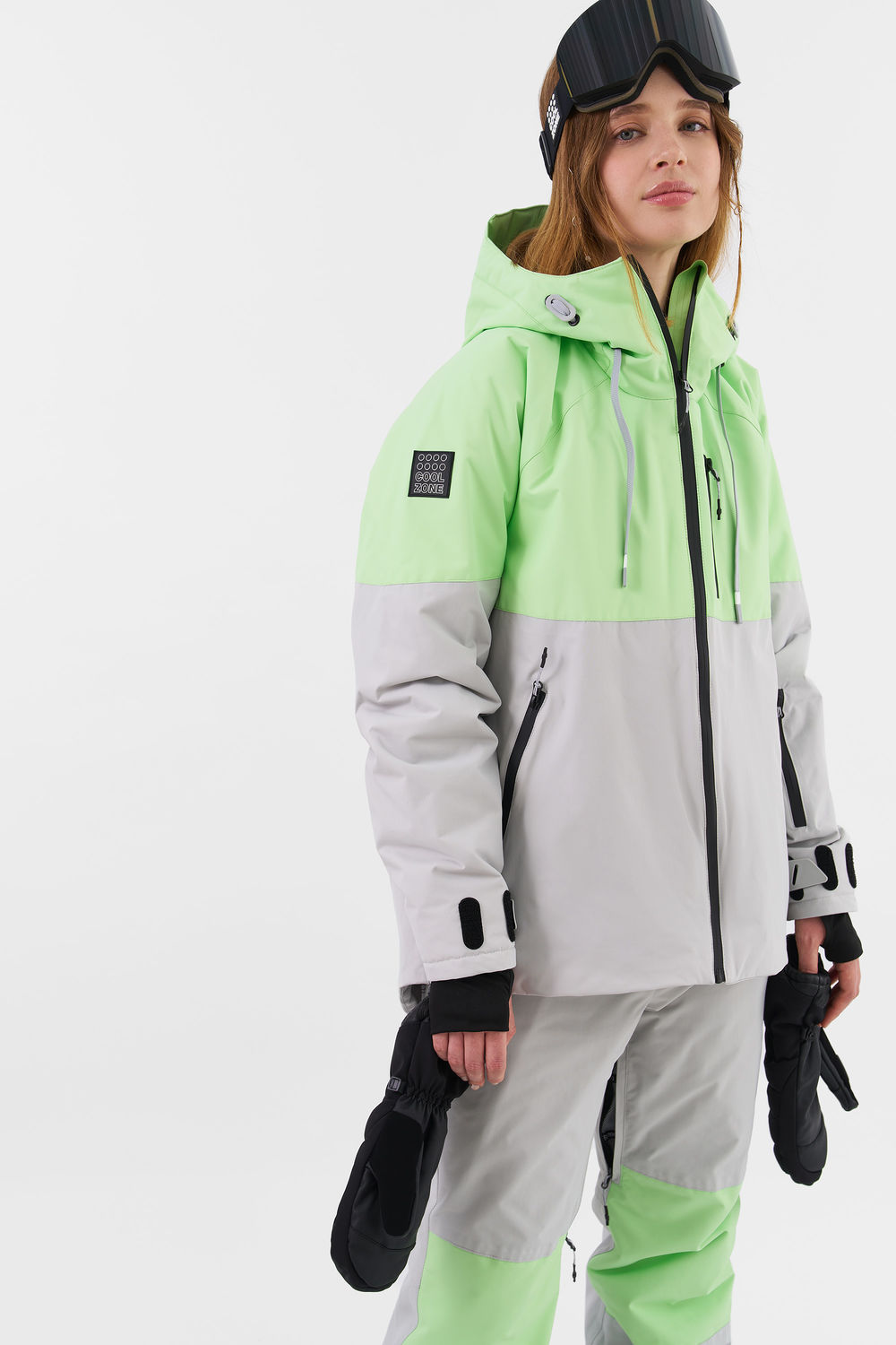 KUSAMA — женская куртка от Cool Zone, созданная в команде с райдером Надеждой Кашкевич. У данной модели современная oversize посадка с удлиненной спинкой. Прочная и износостойкая мембранная ткань увеличивает срок эксплуатации, не пропускает влагу и обладает высоким показателем паропроходимости, не создавая парникового эффекта. А высокотехнологичный утеплитель сохраняет тепло даже в суровых погодных условиях российских курортов. Влагозащитные молнии и дополнительные трикотажные манжеты исключают попадание внутрь мокрого снега.