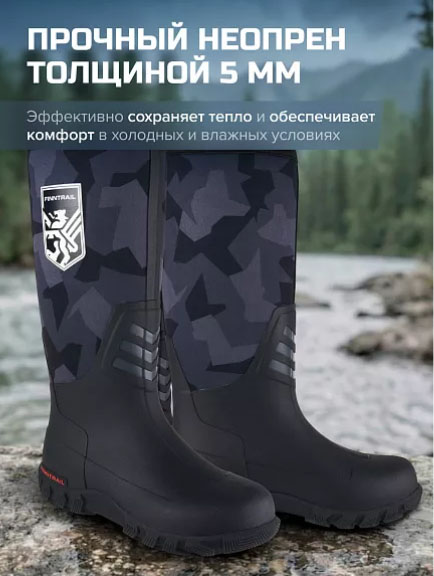 Сапоги FINNTRAIL Outlander созданы для офф-роуд экспедиций, рыбалки и охоты. Прочный неопрен обеспечивает абсолютную защиту от воды, позволяя вам без проблем преодолевать глубокие лужи и болотистые участки. Эргономичный дизайн с поддержкой голеностопа защищает от вывихов и растяжений.